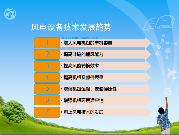 未來風電設備技術發展趨勢是增大風電機組的單機容量,提高葉輪的捕風能力,提高風能轉換效率,提高機組及部件質量,增強機組運輸、安裝便捷性,增強機組環境適應性等。