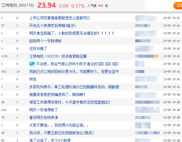 雖然未對信披違法違規做明確說明,但因被證監會立案調查,這則公告還是引發了眾多投資者對后續股價表現的擔憂。在股吧,不少網友發言預測該股或將承壓。